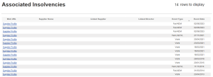 This tab shows where a director in charge of the company you are evaluating has experienced unsuccessful ventures in other businesses where they hold leadership positions. This history sheds light on the way the company is managed and the individuals who are leading it. Frequency of closure and type of closure will affect the health score.